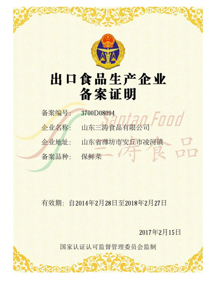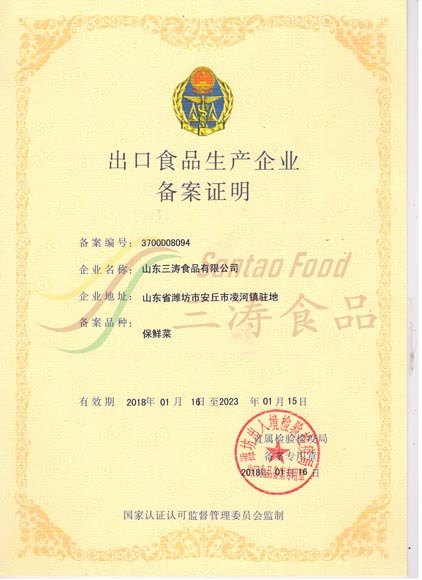 保鮮菜出口備案(àn)證明