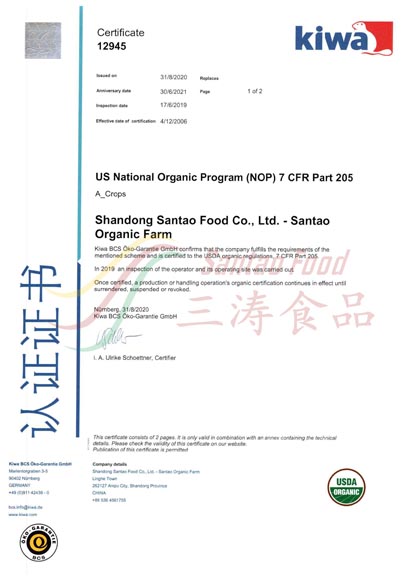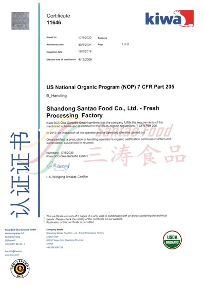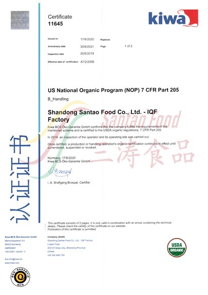 IQF加工廠有(yǒu)機認證